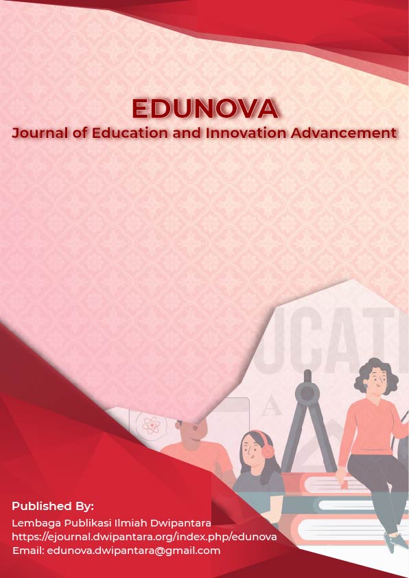 Journal of Education and Innovation Advancement (EDUNOVA) is a peer-reviewed, open-access journal published by Lembaga Publikasi Ilmiah Dwipantara, dedicated to promoting scholarly engagement in the field of education with a particular emphasis on innovation and progress. The journal welcomes high-quality research articles, literature reviews, and case studies that address innovative ideas, transformative practices, and forward-thinking strategies in educational theory and application. With an inclusive and interdisciplinary scope, Edunova embraces a wide range of topics including teaching and learning innovation, curriculum reform, digital pedagogy, teacher professional development, educational assessment, leadership in education, and education policy. It also invites research that bridges education with fields such as psychology, sociology, technology, and cultural studies to support the advancement of meaningful, adaptive, and contextually relevant educational practices. Edunova values both conceptual and practical contributions, serving as a dynamic platform for researchers, educators, and practitioners committed to enhancing the quality and impact of education. The journal is published three times yearly in May, August, and December, and is identified with the ISSN: [e-ISSN 3090-5664].
